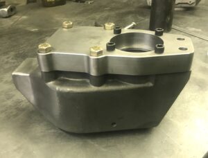 Our HMMWV rear adapters allow you to modify a standard HMMWV portal case to be used on a non-steer rear axle. The upper ear of the case will need to be cut off flush with the mounting surface, and two additional 1/2″ – 13 holes will need to be tapped. Adapters are machined to fit 3.5″ OD axle tubes. Includes 3/16″ thick gusset.